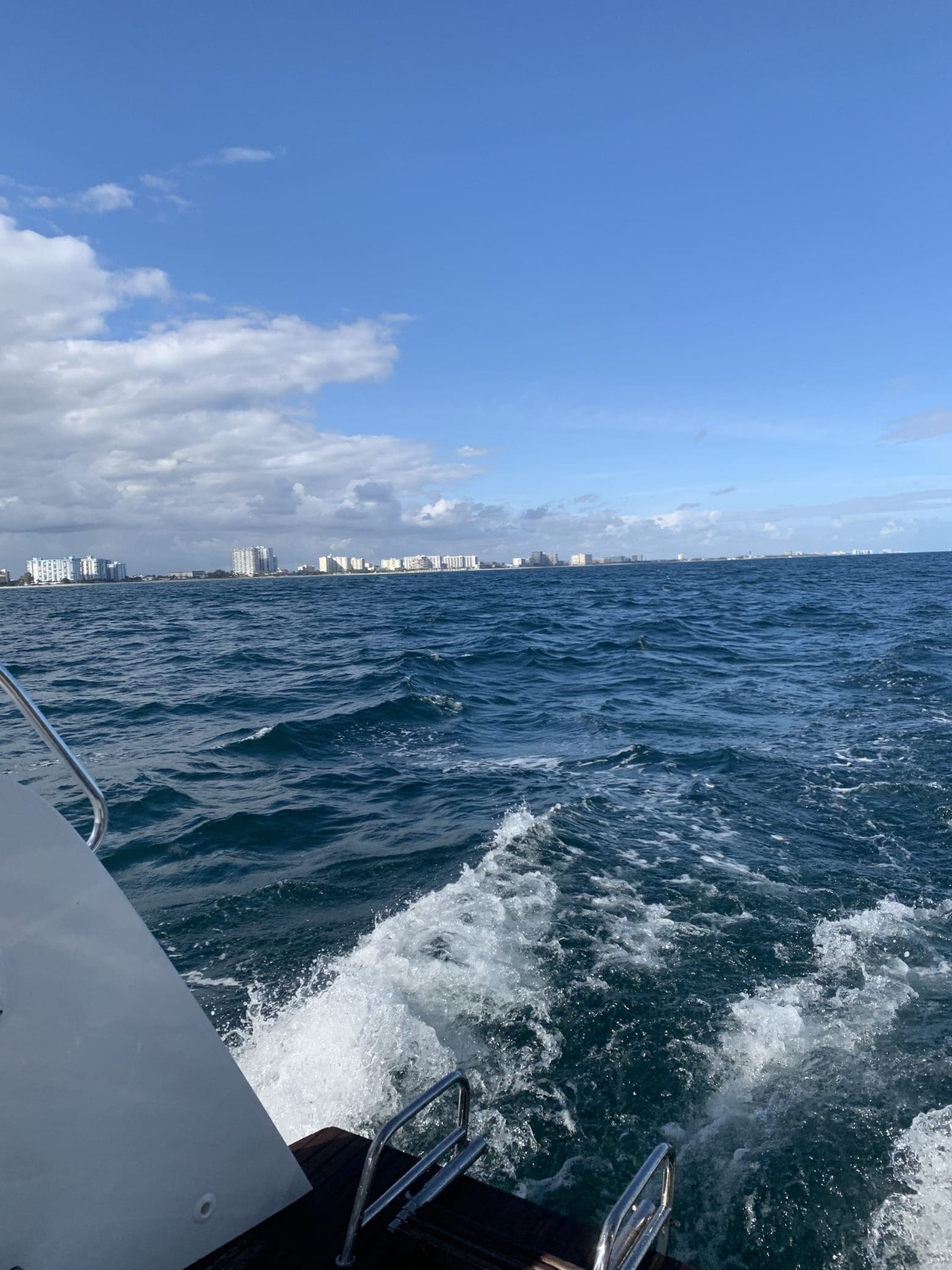 This was definitely one of our more uncomfortable trips. We found ourselves in sloppy seas with big swells and ~20kn of wind. We motorsailed with our mainsail reefed all morning. We were bouncing around a lot. I was not feeling fantastic. Luckily, things started to clear up and calm down as we approached Ft. Lauderdale.