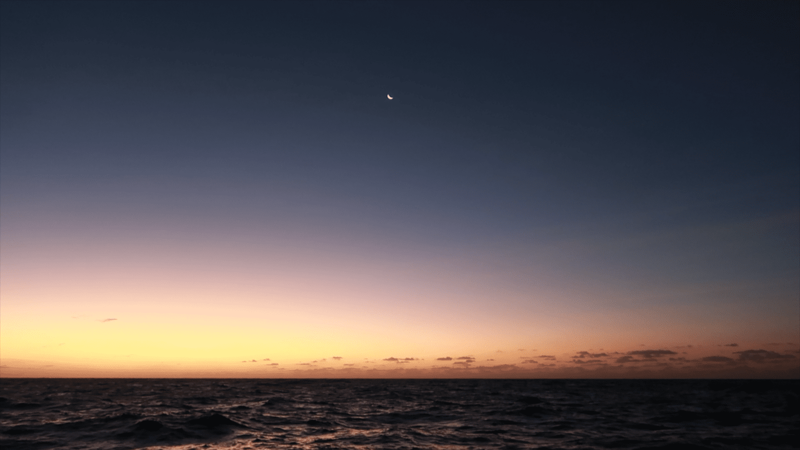 We sailed all day using our main and jib, keeping our speed around 5.5-6.5kn. We both took showers this afternoon, washing away the sweat and sunscreen we’d collected while conserving water. It feels so good to be clean again. We watched our last sunset of the trip and spotted a sliver of moon off our port side.