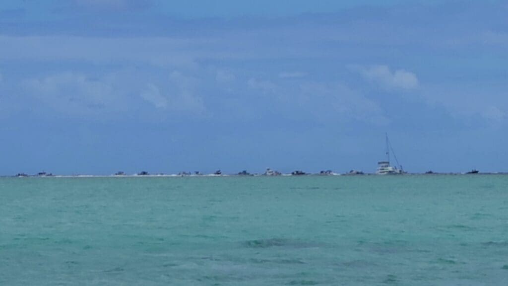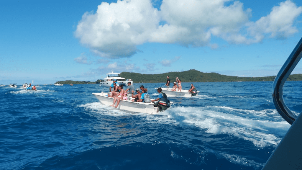 That morning, we dropped the dinghy and headed toward the pass. We could see a line of boats coming in, composed of rowers, support vessels, and spectators alike. There were jet skis, dinghies, pangas, sailboats—you name it!