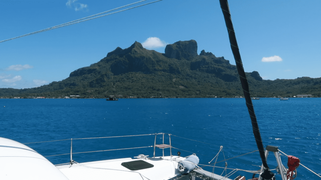 On Wednesday, we decided to move to a new mooring field. We motored for an hour and a half around the island and hopped on a ball with a side view of Mount Otemanu. It looks completely different from this angle!