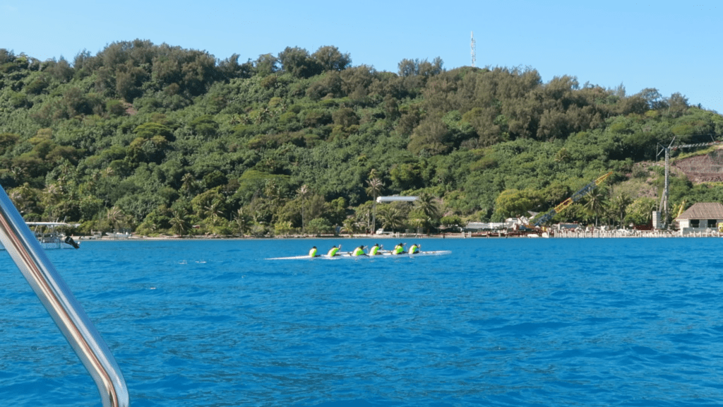 Friday was Hawaiki Nui Va’a, a historic race of over one hundred six-man teams in Polynesian outrigger canoes that began in 1992. The race is 80 miles long and completed over three days. The route covers the open ocean and inside lagoons spanning the islands of Huahine, Raiatea, Taha’a, and Bora Bora. We were eager to watch them cross the finish line just around the corner from our mooring field!