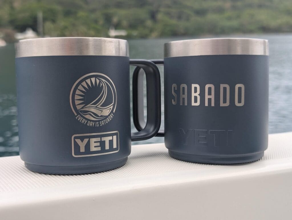 We replaced our ceramic coffee mugs with customized 10oz Yeti mugs a few years ago and love them! Our boat name and logo are engraved. They’re practically indestructible, great for coffee or tea (especially when underway—the lids are very secure!) or to-go cocktails. If you’re purchasing more than one, the stackable designs are ideal for storing on a boat. If you know the sailor in your life already has a go-to mug/tumbler, pick the cocktail shaker, pitcher, or water bottle!