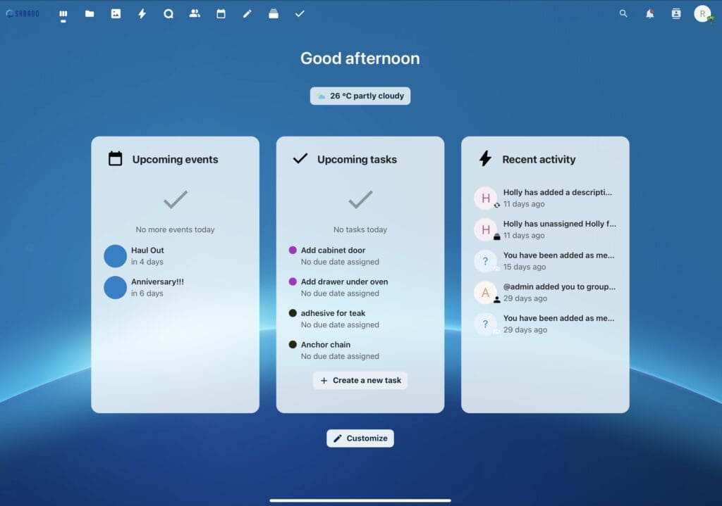 Nextcloud: I hesitate to include this because it is such a pain to install, but honestly, it’s a very important part of our onboard services. This is a complete replacement for Google Drive. It is file storage, document creation, document sharing, backup, photos, calendar, project management, contacts, etc. It is 100% available when there is no internet, and if there is internet available, it is completely accessible when we are off the boat.
