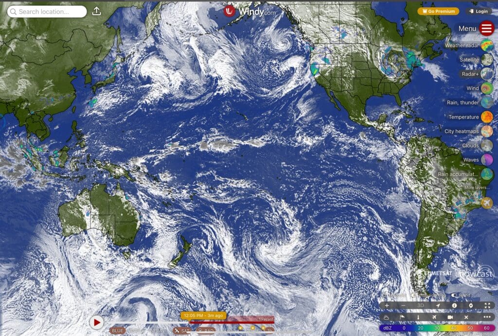 Windy: Everyone knows about Windy.com. Yes, this app/service can be a full-featured forecast companion, but our use is much more basic. When we want a quick graphical view of what to expect in the near term, we pop Windy open. It’s super easy, super fast, and does what it does (show you the weather) really well. We’ll often have this webpage open on our nav desk PC so we can watch the weather radar.