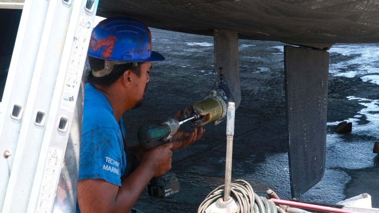 We discussed our options with the mechanics: we carried speedi sleeves for situations like this, but the shaft didn’t seal from the factory, so it already had two sleeves on it from the first haul out. The mechanics all agreed it was too deep of a groove to ignore. The best course of action would be to replace the shaft. Luckily, there was a Yanmar shop nearby. So, we walked over in the sweltering heat with the part number in hand. Of course, they didn’t have it in stock and quoted us an outrageous amount to have them order it. We returned to the boat and began exploring our other options. The clock was ticking as we sat in the most expensive boatyard we’d ever been in. We scoured the internet for a shop with the part in stock and called everyone we could think of to see how quickly we could get it. We then realized that even if we could get the replacement shaft, we couldn’t properly remove the old gears here and press them onto the new shaft. I was surprised to learn that Yanmar doesn’t sell them fully assembled.