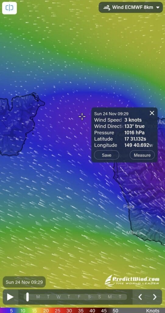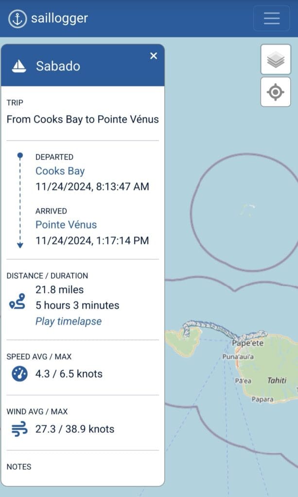 I grabbed what we needed and a few additional odds and ends to make the trip worthwhile, then booked a flight right back to Tahiti. Unfortunately, my return flight was canceled the night before I was set to leave. I was rebooked for the next flight out, but the delay caused me to miss the ferry back to Moorea, leaving Ray to move Sabado to Tahiti single-handed. The forecast showed 3kn, so imagine his surprise when encountering 27kn winds on the nose and 6ft seas. The forecasts have proven worthless time and time again for us here in French Polynesia.