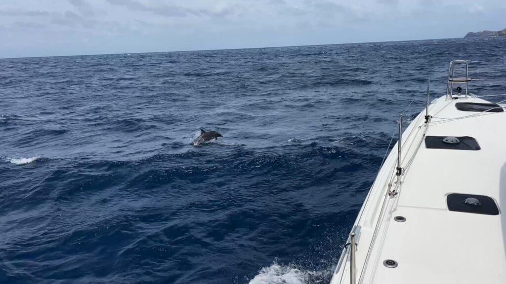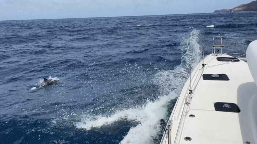 Tuesday marked day 7 of our passage from Tahiti to the Marquesas. We had made excellent progress overnight and were set to arrive in Nuku Hiva late that afternoon, finally. It was Christmas Eve. We continued bashing upwind all morning, eventually changing our destination to Ua Pou, a smaller island nearby that would shave 4-5 hours off our trip. We were desperate to drop anchor and get some rest. As we approached the anchorage, a pod of spinner dolphins came to greet us. It was too rough to go up on the bow to watch them play, but we cheered them on from the helm as they frolicked in the waves. Surely this was a good omen, signifying the hard part was over… Right?