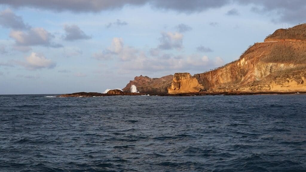 The anchorage was empty, and towering cliffs surrounded us. We found a nice sandy spot and got settled, pouring a glass of wine and sitting in our salt-soaked cockpit. Those were some conditions we wouldn’t wish on anyone! We debriefed and devised a to-do list to get the boat back in order while we watched the waves crash on the nearby rocks, but first, we were due for a good night’s sleep.