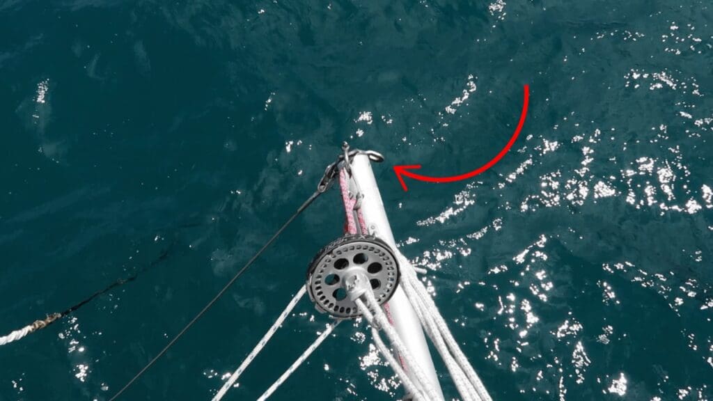 Admittedly, we did not conduct very thorough inspections during this passage, so we were worried the powerful waves had whacked that hunk of stainless steel into our hull, potentially doing some damage below the waterline. I immediately got in, but with the murky water and the hull aggressively bobbing up and down, it was hard to get a clear look. I could feel the divots and see some missing bottom paint, but I couldn’t tell if it went beyond the gel coat in the smaller spots.