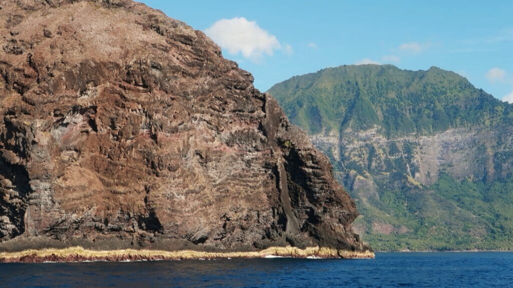 Using our main and jib, we were able to sail past sunrise, only turning on an engine to complete our approach when the staggering mountains of Hiva Oa blocked our wind. We reminisced on our arrival to this very island after our 27-day sail from Panama… We were eager to explore what is advertised as the creme de la creme of cruising; we had no idea how many challenges we’d face to see this sliver of paradise. That was nearly 10 months ago! It’s no secret we had a stressful season full of bad weather, poor anchorages, and expensive repairs. We had hoped to depart before our insurance limitations for storm season took effect, but we are still here. Perhaps that’s a factor in our lack of social media presence: we are making the best of it, but we’re still a smidge bummed. The stunning scenery and frequent manta ray sightings sure do help, though. 😉