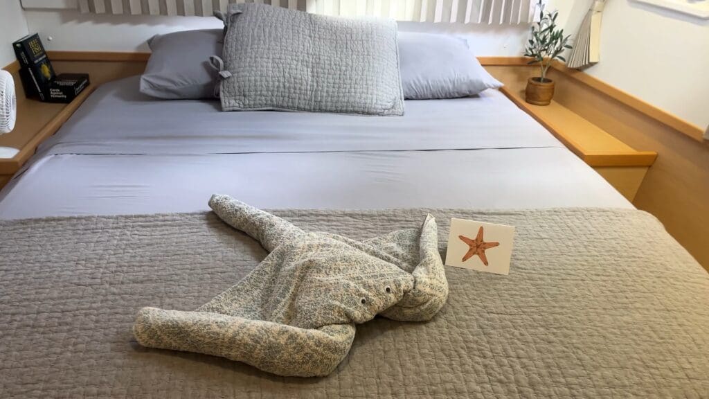 We dropped our anchor near Atuona and spent the following days reprovisioning and cleaning in preparation for visitors. Having guests aboard always reignites our passion for this lifestyle. Seeing someone’s reactions to our everyday routines reminds us just how lucky we are! I revived my towel animal tradition and made a manta ray for the guest cabin: