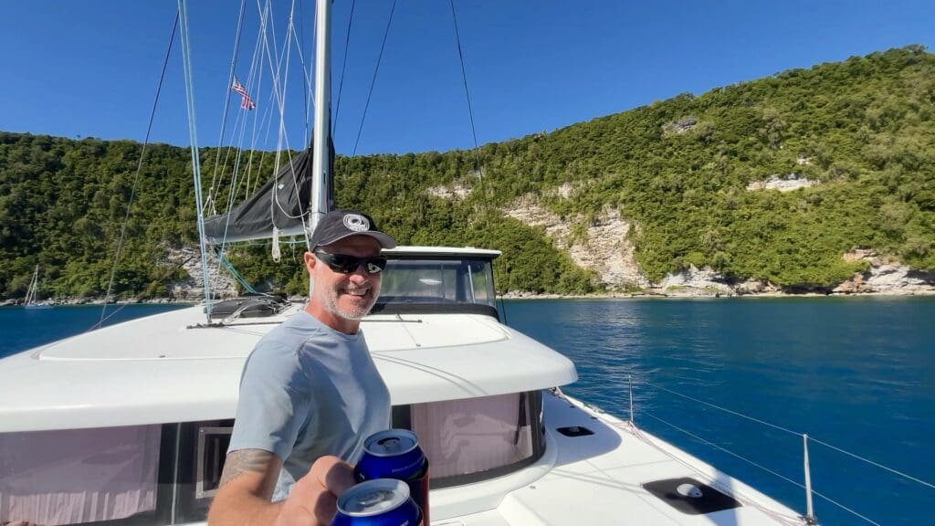 We dropped our anchor around 10AM in 60ft of crystal clear water and celebrated with a “we’re here cheers” of our current favorite— Foster’s lager.