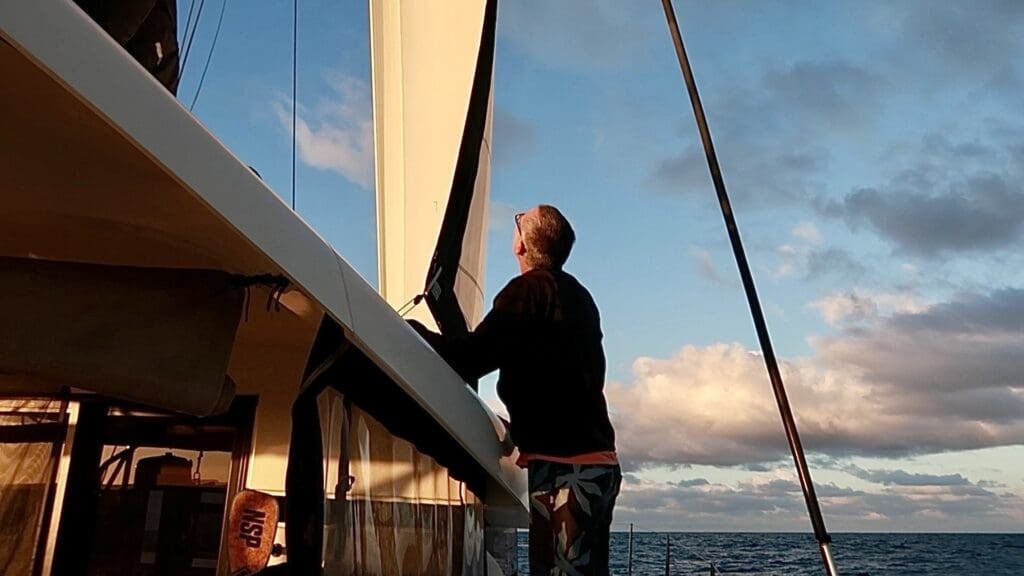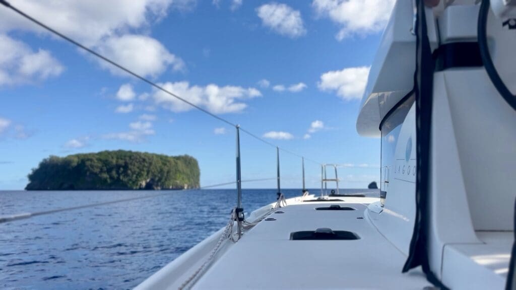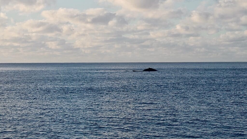 So, we turned around, reset our sails, and headed back toward Vava’u. The weather in the South Pacific Convergence Zone is tricky, so I can’t say I was surprised that this appeared seemingly out of nowhere. In our experience, the weather forecasts here have been notoriously unreliable. I remember several instances in French Polynesia where the forecast was 180° and 20kn off! I sat at the helm with Ray and scanned the horizon for whales as we backtracked. This aspect of sailing has always been a challenge for me. I love to plan and feel prepared for the future, but things rarely go as planned on a boat! Being flexible and staying lighthearted rather than letting myself get disappointed is something I’m constantly practicing.