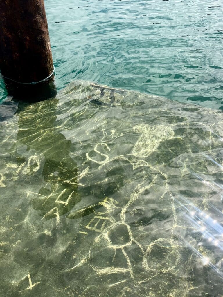 Very interesting “art” on the Dinghy dock it seems… LOL