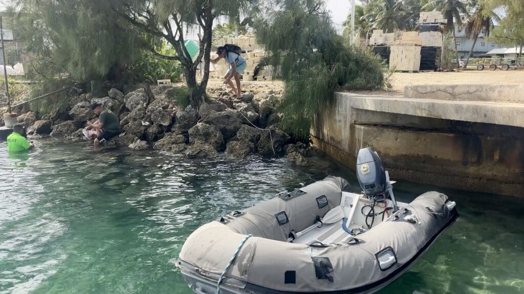 We ended up departing again two days later. The wind had disappeared, but we decided to motor to Pangai anyway. This move puts us one step closer to New Zealand, and the clock is ticking! We hope to haul out in early August. It was a dreary and sloppy trip, but we were thrilled to anchor in 15ft of sand at our destination. It feels like forever since we’ve been in a nice, shallow anchorage! We took a quick nap, then went ashore to complete our domestic check-in. When we arrived at the dinghy dock, it was underwater… So, we tied off to a tree and walked around until we found the customs office.