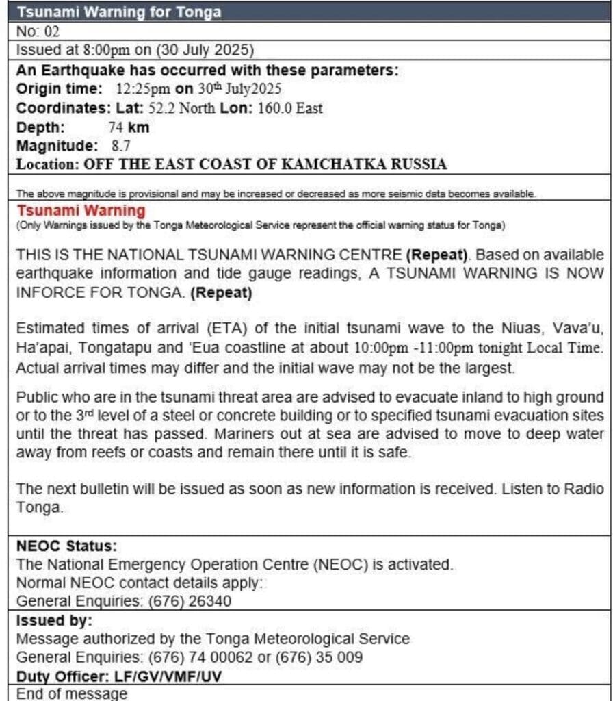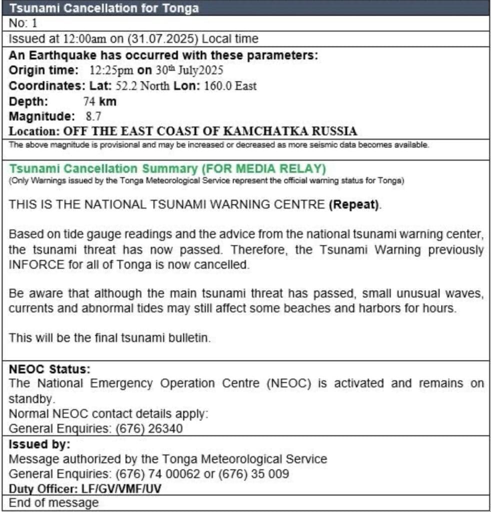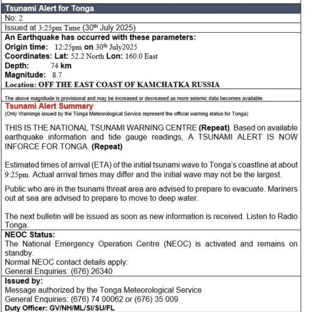 JULY 30, 2025 3:25PM: The Government of Tonga posted an official bulletin, putting us on “Tsunami Alert”. We only saw this because we were actively searching for it.