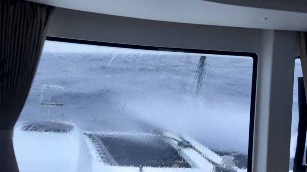 Conditions were miserable. We were in full foul-weather gear, cold and soaking wet as we were pelted by rain and salt spray.