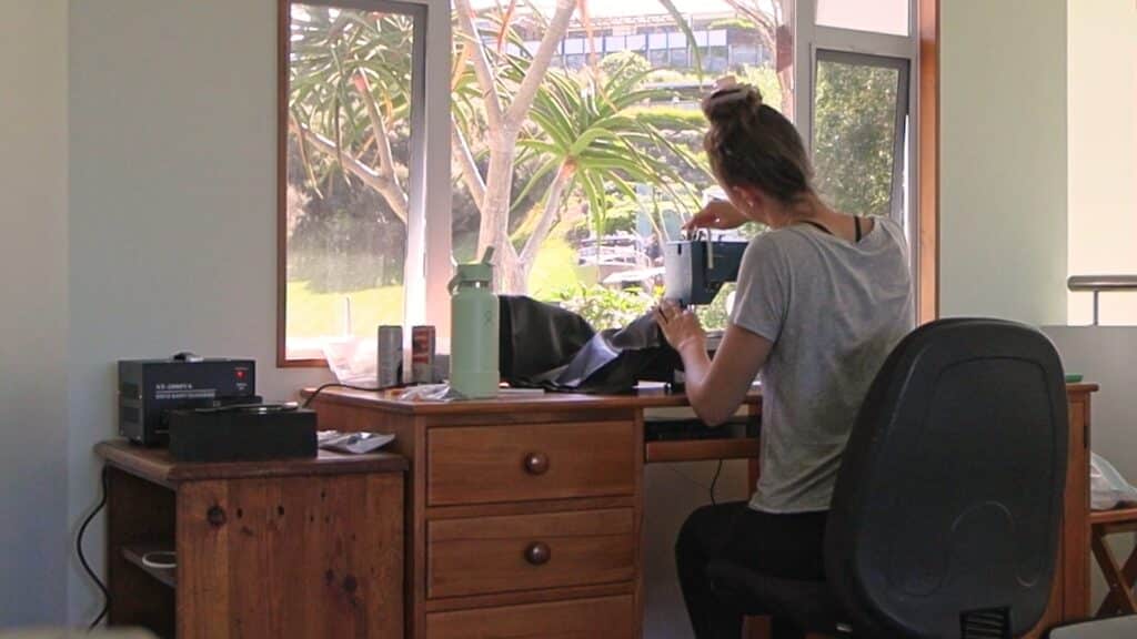 I’ve converted a corner of our rental house into my sewing lair and have been learning how to sew. I want to thank Kristie, Megan, Lisa, and my mom for all the helpful tips and advice! I finished my first project this week: reupholstering the cushion on our cockpit cooler/storage bench. The corners were definitely the most challenging part! I’ve also started mapping out my fabric to re-do our ratty line bags. I’m finding this new hobby really fun, and I’m looking forward to completing more projects!