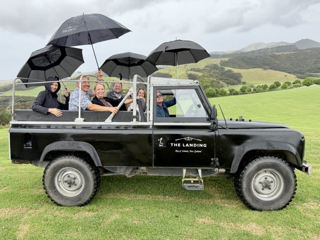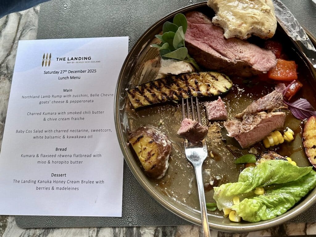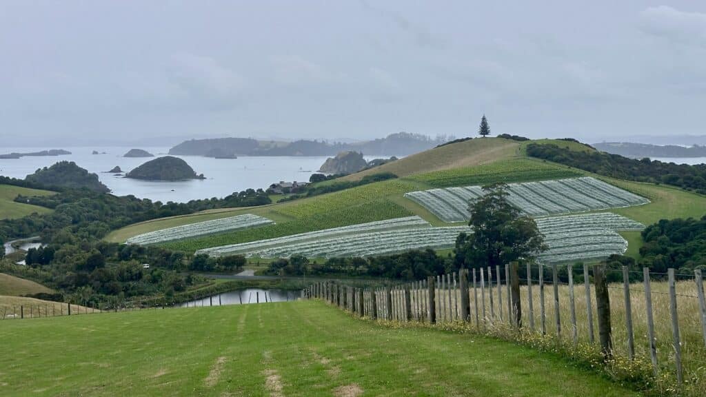 We were picked up at the wharf by Gus, the skipper, and taken by boat to The Landing, a stunning vineyard and winery on the Purerua Peninsula in the Bay of Islands known for its award-winning estate wines and beautiful coastal setting. We enjoyed a tour of their incredible vineyard and cellar, followed by a wine tasting and a chef-curated seasonal lunch featuring fresh local produce. We even noticed a few mooring balls nearby… perhaps we’ll return one day on our boat?