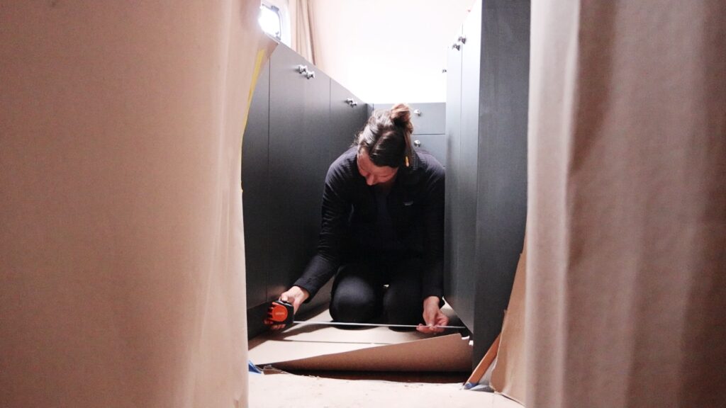The cabinetry is in and the countertops are finished. We’re just waiting for the installation. I’ve made a template for the flooring, which we’ll be cutting and installing ourselves. The end is in sight, and we’re hoping to have this project wrapped up next week. After that, we’ll move our tools and spare parts in and start getting everything organized. We can’t wait to show you the final product!